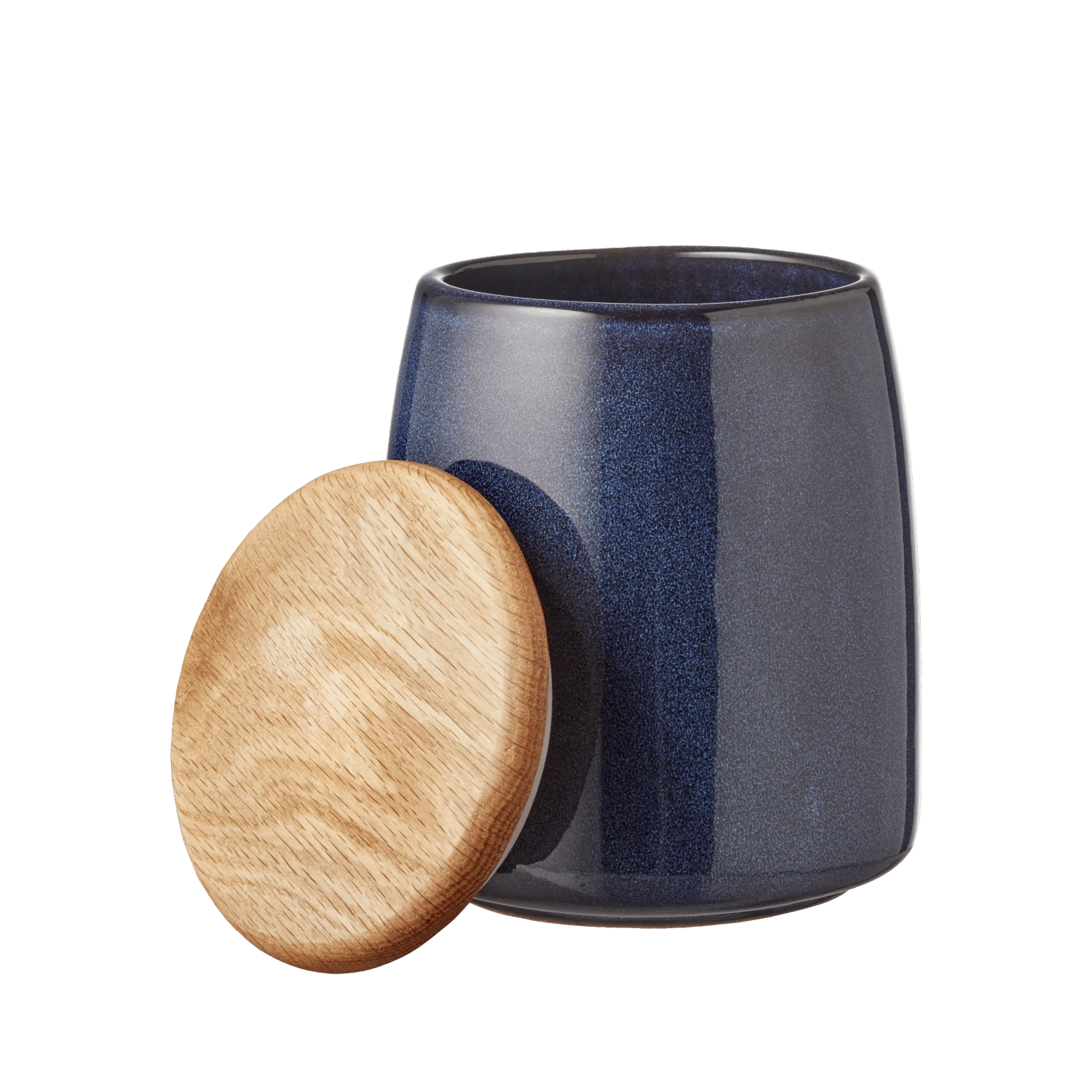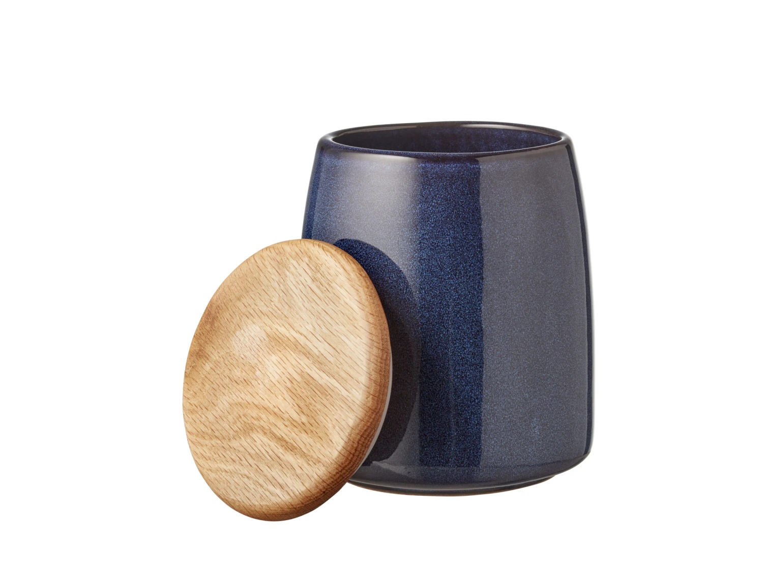 Tolles Glas aus Steinzeug mit glänzender, farbiger Glasur zur Aufbewahrung von Sonnenblumenkernen, Reis, Salz, Tee o.ä. Der Deckel ist mit einem Silikonring versehen und schließt völlig dicht. Das Glas kann im Geschirrspüler gewaschen werden, während der Holzdeckel von Hand abgewaschen wird. 16,5 cm hoch.