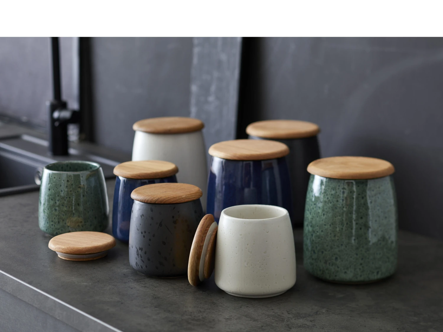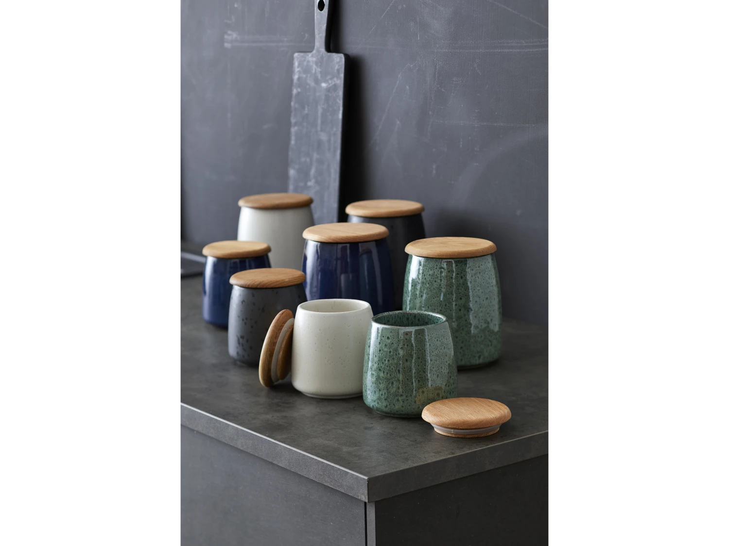 Bewahren Sie Snacks und Müsli, Reis oder Gewürze in den tollen Gläsern aus Steinzeug von BITZ auf, die wie die anderen Produkte im umfangreichen BITZ-Sortiment einen rohen, hübschen und skandinavischen Ausdruck haben. Sie haben einen dicht schließenden Deckel aus Eichenholz und sind in zwei Größen sowie in mehreren Farben erhältlich. Sie lassen sich perfekt mixen und geben so Ihren Schubladen und Schränken einen ganz persönlichen Ausdruck.