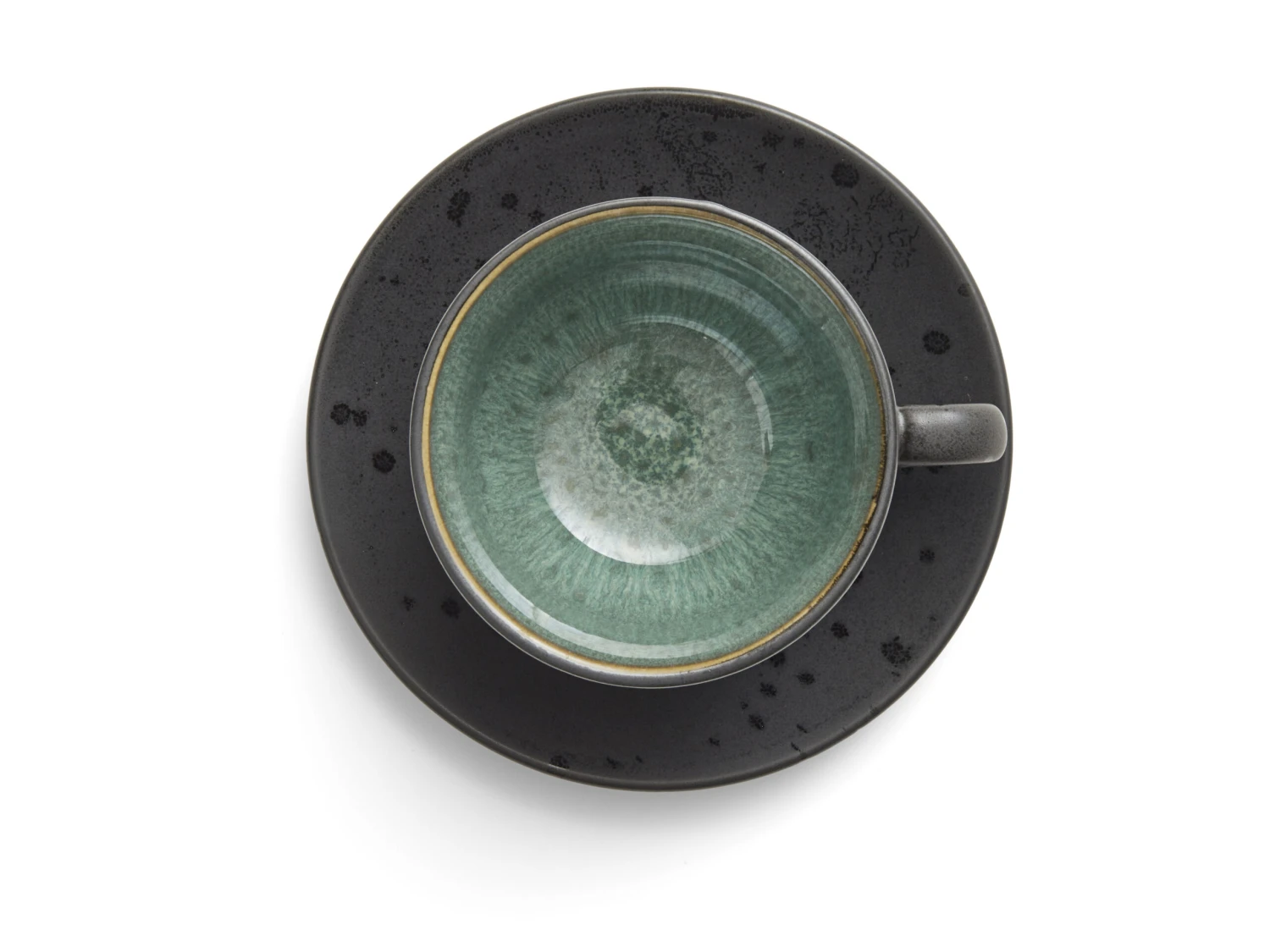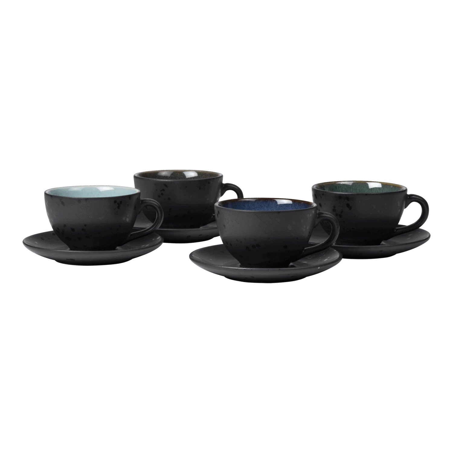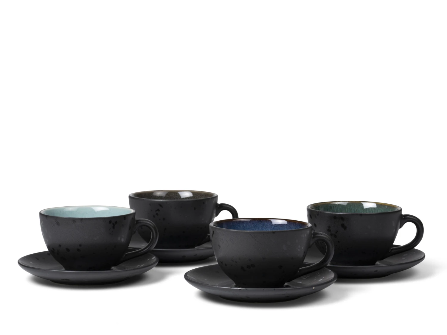 4 pcs. Enjoy your cappuccino and other coffee favourites in the beautiful BITZ Cup with saucer. Made of matte, black stoneware with glossy glaze, green, dark blue, light blue, grey on the inside of the cup. 24 cl, 6 cm high. Dishwasher-safe, microwave-safe and oven-safe up to 220°C.