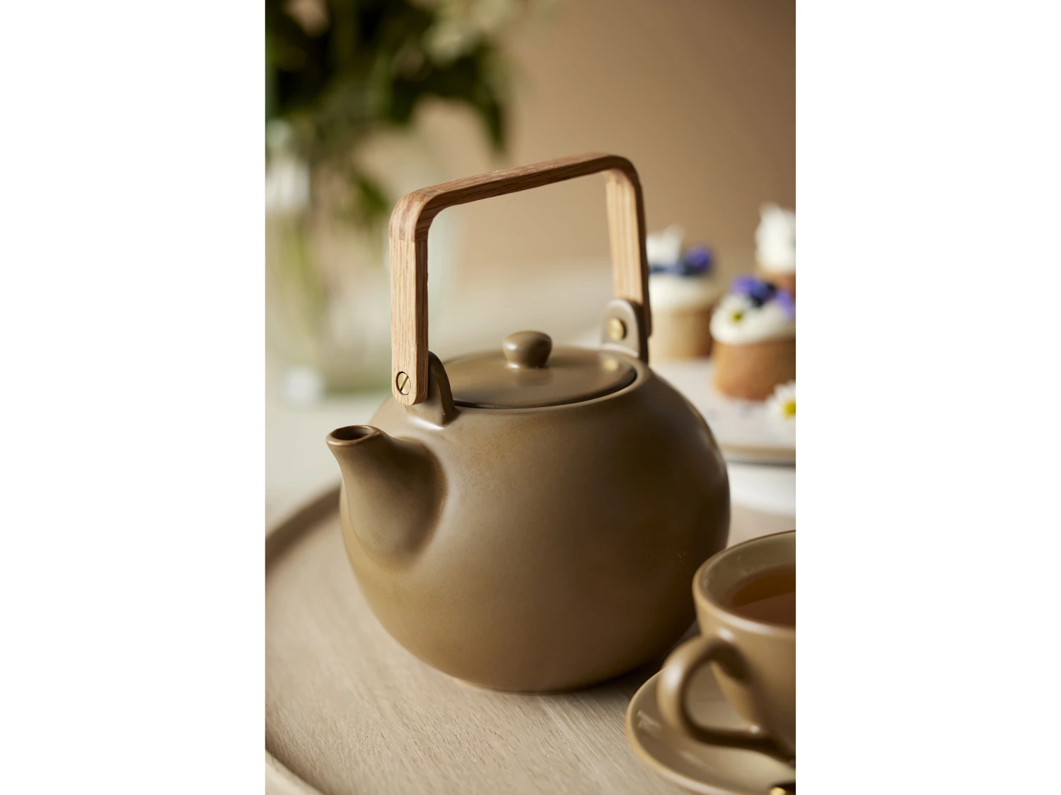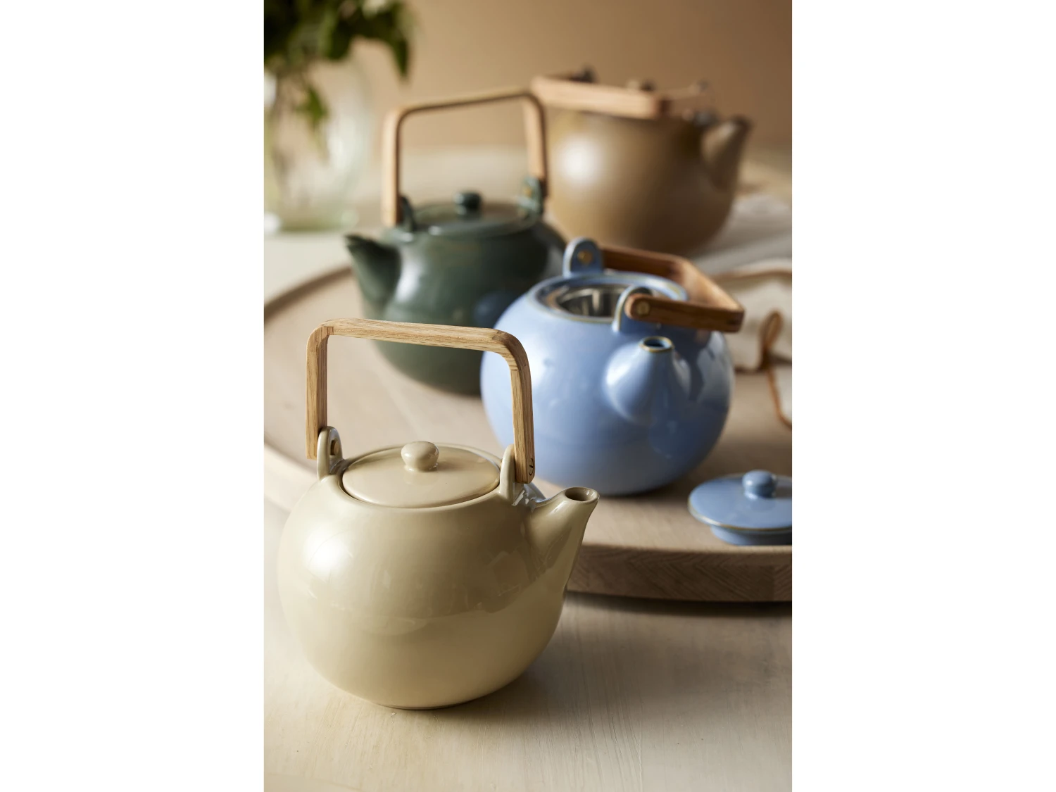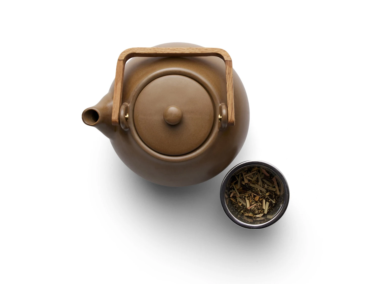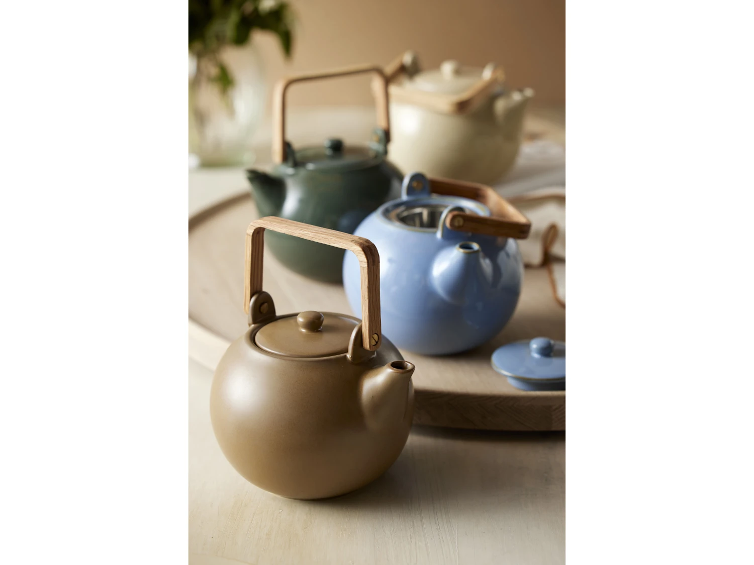 Die BITZ-Teekanne fasst 1,2 Liter und besteht aus robustem Steinzeug mit einer schönen, reaktiven Glasur und einem rustikalen Eichengriff mit Messingnieten. Brauen Sie Ihren Lieblingstee, servieren Sie ihn brühend und lassen Sie die Gemütlichkeit sich ausbreiten.