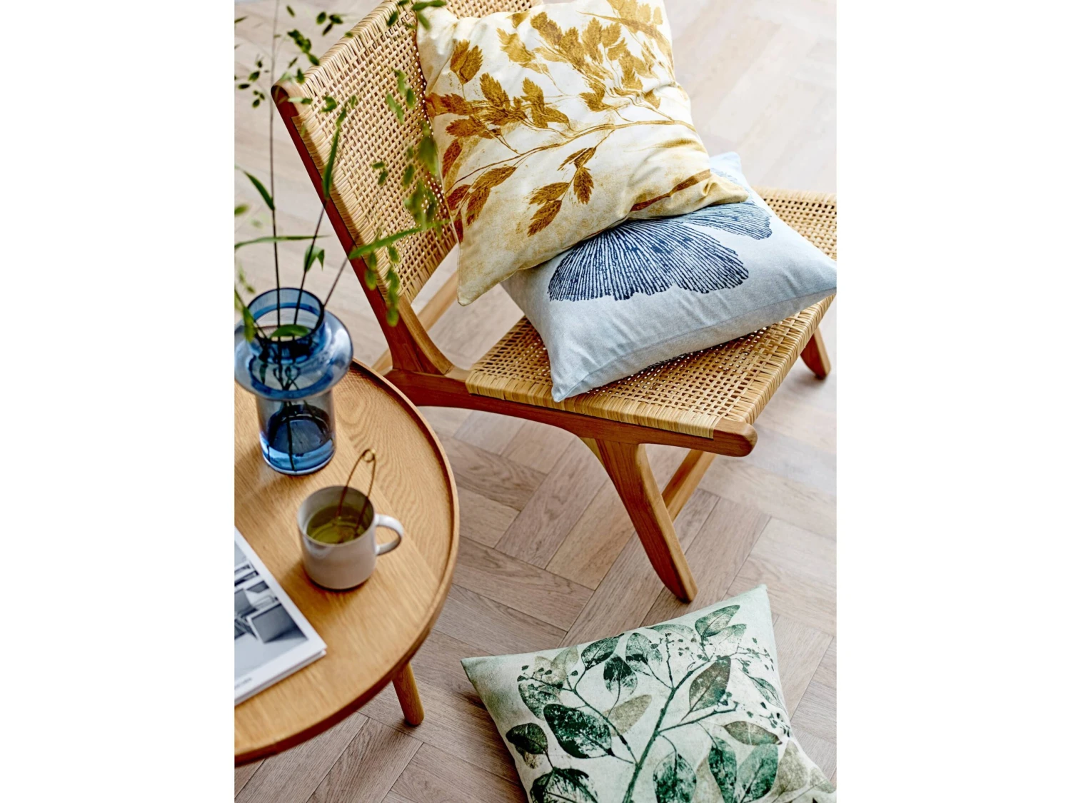 Die Pflanze Eukalyptus gedeiht in Sonne und Wärme. Die Blüten sind klein und ohne Blütenblätter, und es sind die Blätter mit ihrem charakteristischen Duft, die das besondere Merkmal von Eukalyptus sind. Das botanische Motiv sorgt für eine einladende und warme Atmosphäre in der Einrichtung.
