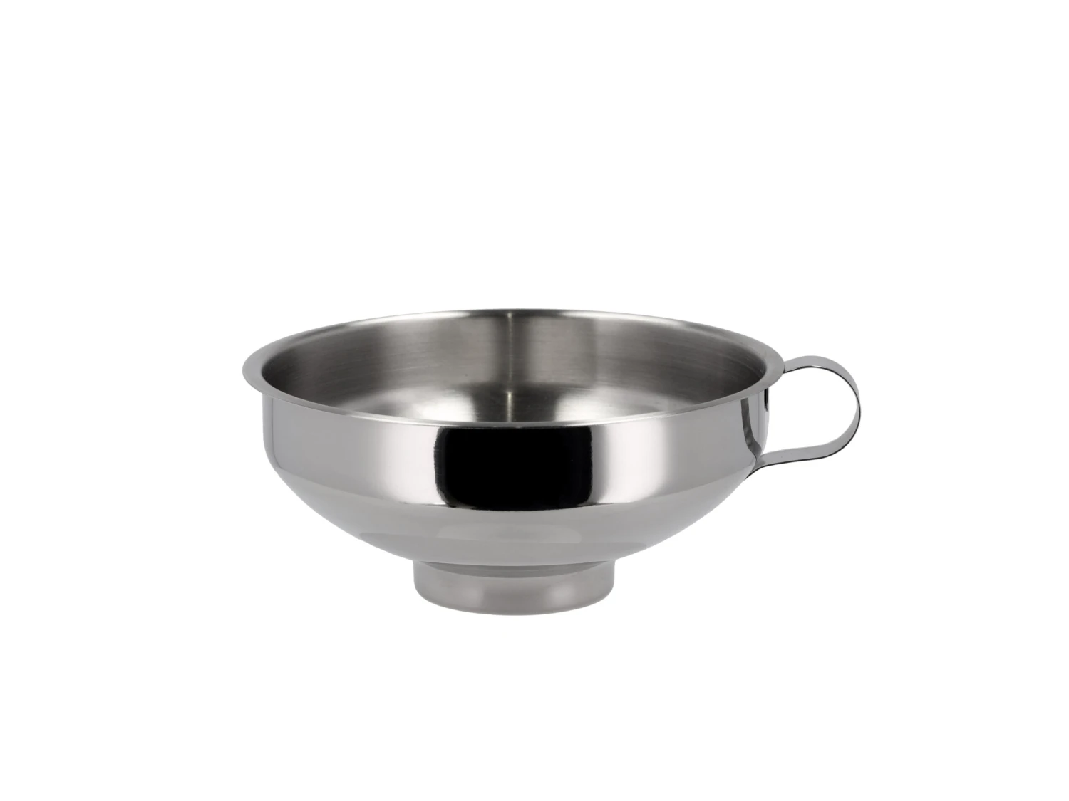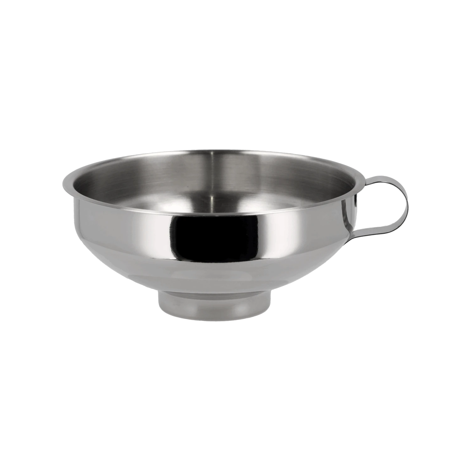 Praktischer Trichter mit Henkel aus Edelstahl. Die obere Öffnung des Trichters hat einen Durchmesser von 15 cm und die untere Öffnung hat einen Durchmesser von 5,3 cm. Die breite Öffnung unten macht den Trichter ideal zum Abfüllen von Marmelade, Gelee oder Püree in Gläser. Für den Geschirrspüler geeignet.