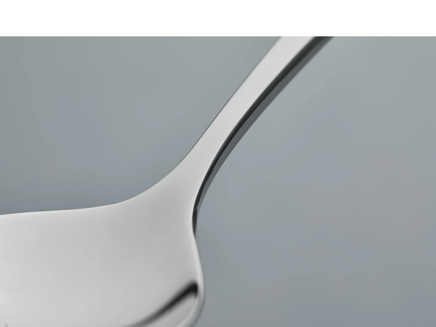 Fuga hat ein klassisches Design mit weich abgerundeten Linien, die angenehm in der Hand liegen, und bietet mit den matten Schäften und polierten Köpfen einen raffinierten Kontrast. Tias Eckhoff entwarf im Jahr 1962 das legendäre Besteck, das in seinem Design Klarheit und Präzision vermittelt, dabei jedoch einen subtilen Ausdruck bewahrt.