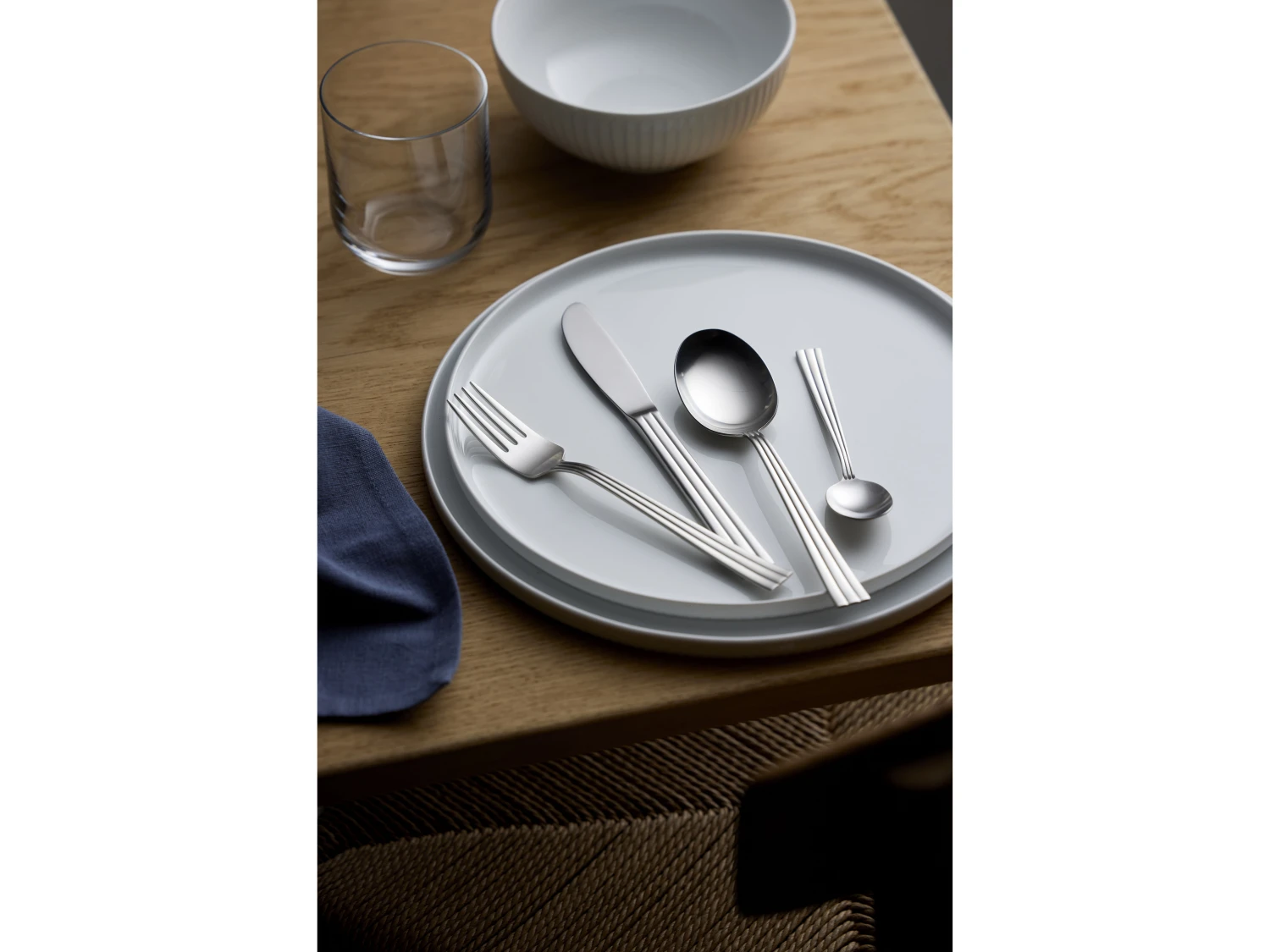 Thebe hat eine klassische und zeitlose Form, die das Besteck heute noch genauso schön und modern macht wie zu seiner Entstehungszeit im Jahr 1944. Thebe war die erste moderne Besteckserie aus Edelstahl von Gense und ist vom prächtigen ägyptischen Stil mit seinen strengen und stilvollen Linien inspiriert. Spülmaschinenfest.