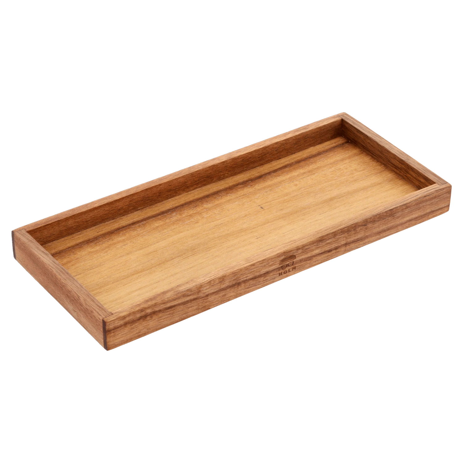 Tablett aus Akazienholz. Für die Verwendung des Tabletts in der Küche sind der Phantasie keine Grenzen gesetzt. Es eignet sich perfekt, um Öle, Essig, Gewürze und Kräuter darauf zu stellen und zum Servieren von Snacks. 30 x 13 x 2,5 cm.