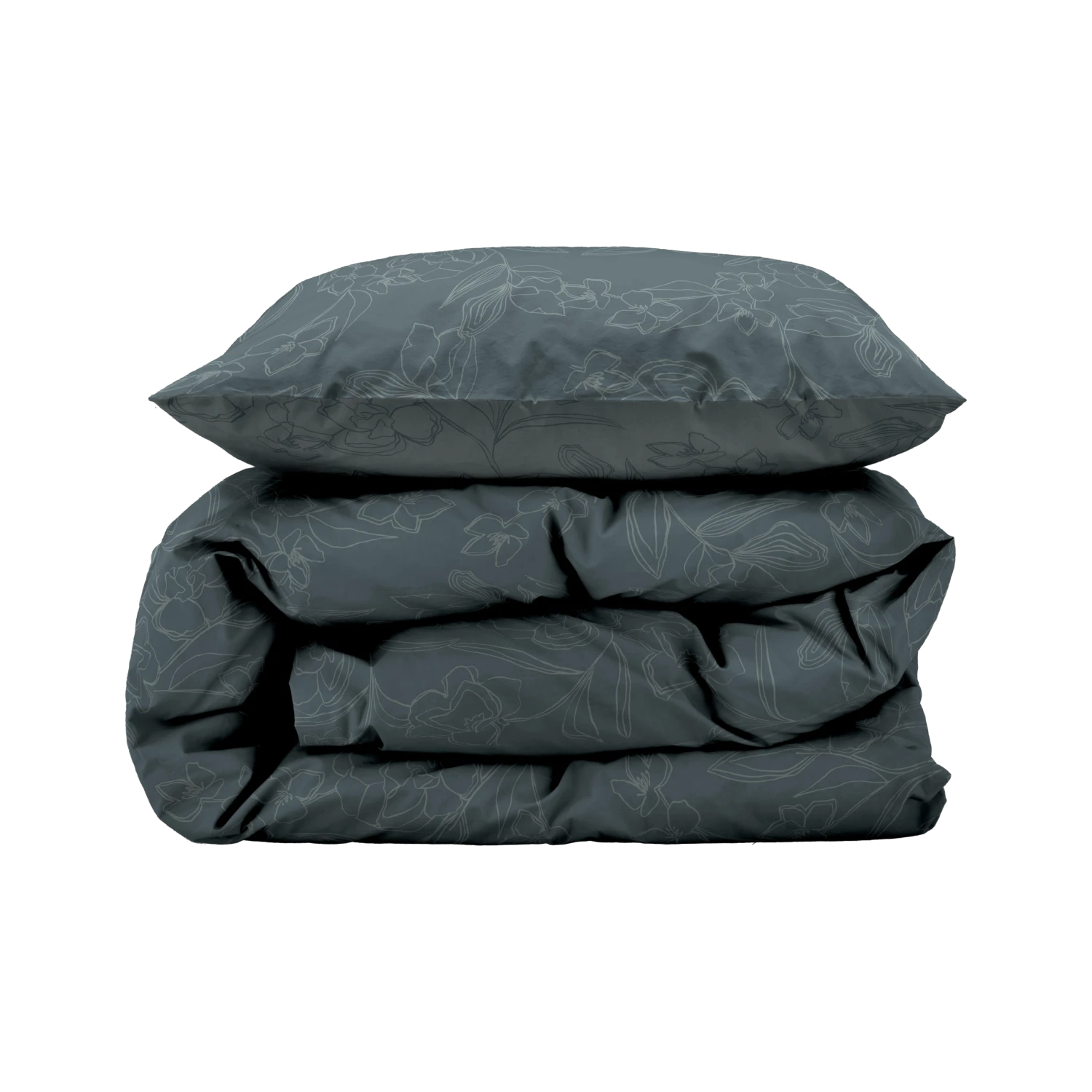 Die schlichten Blüten, mit nur einem Strich gezeichnet, bilden ein feines, fließendes und feminines Muster. Der handgezeichnete Stil und die ultrafeinen Linien auf dem monochromen Hintergrund sind beruhigend für das Auge. Der Ton-in-Ton Doubleface-Effekt bietet die Möglichkeit, den Ausdruck im Schlafzimmer zu variieren.