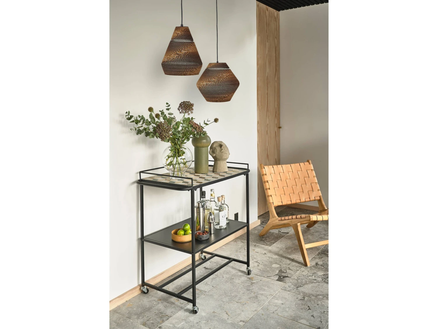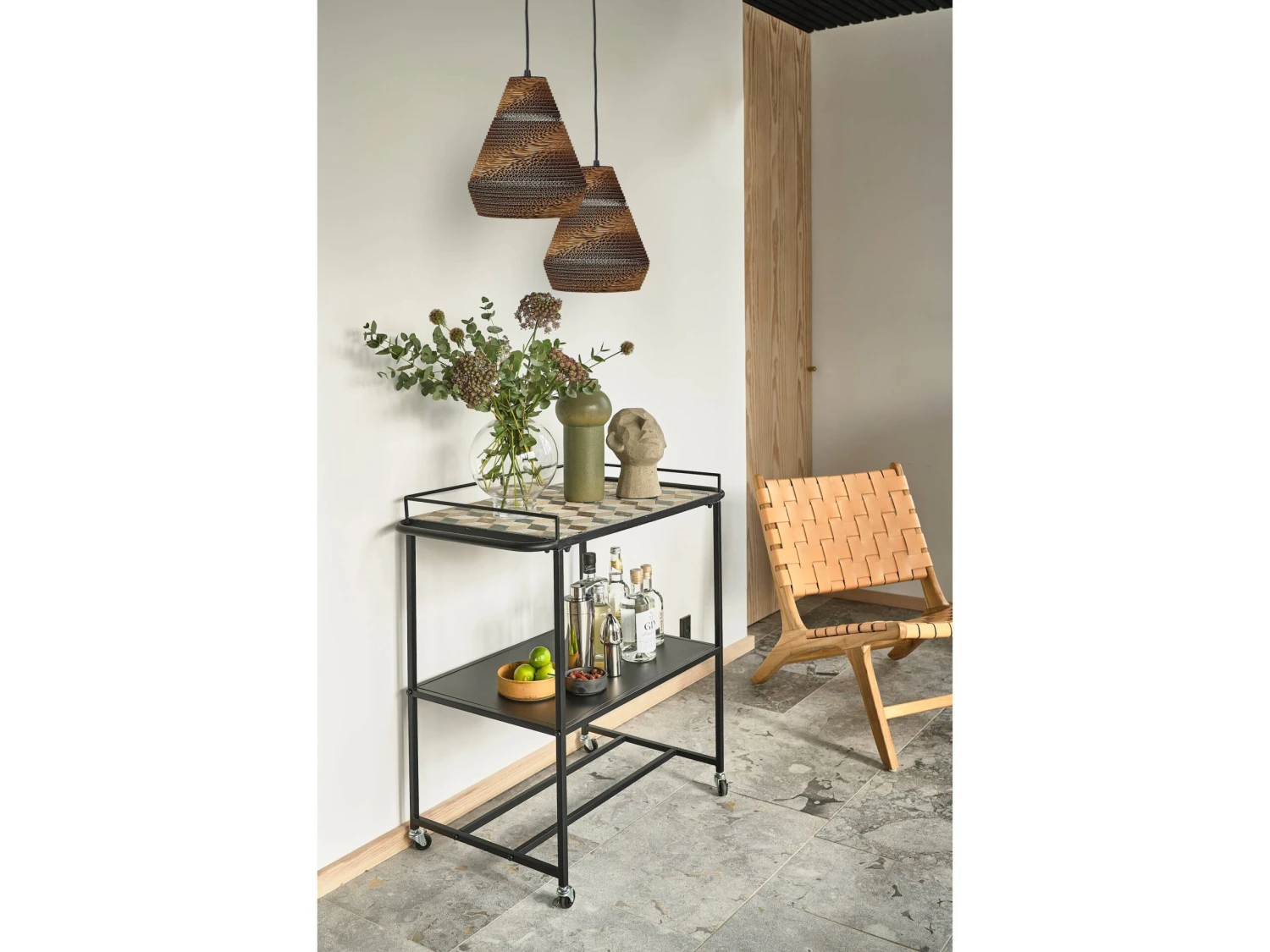 Der Bar- oder Servierwagen bietet viele Anwendungsmöglichkeiten und kann als hübsches Detail in der Einrichtung z. B. auch für Bücher, Pflanzen, Kerzen und andere Dekorationen verwendet werden. Sie können ihn natürlich auch benutzen, um Getränke für Ihre Gäste anzurichten und zu servieren.
