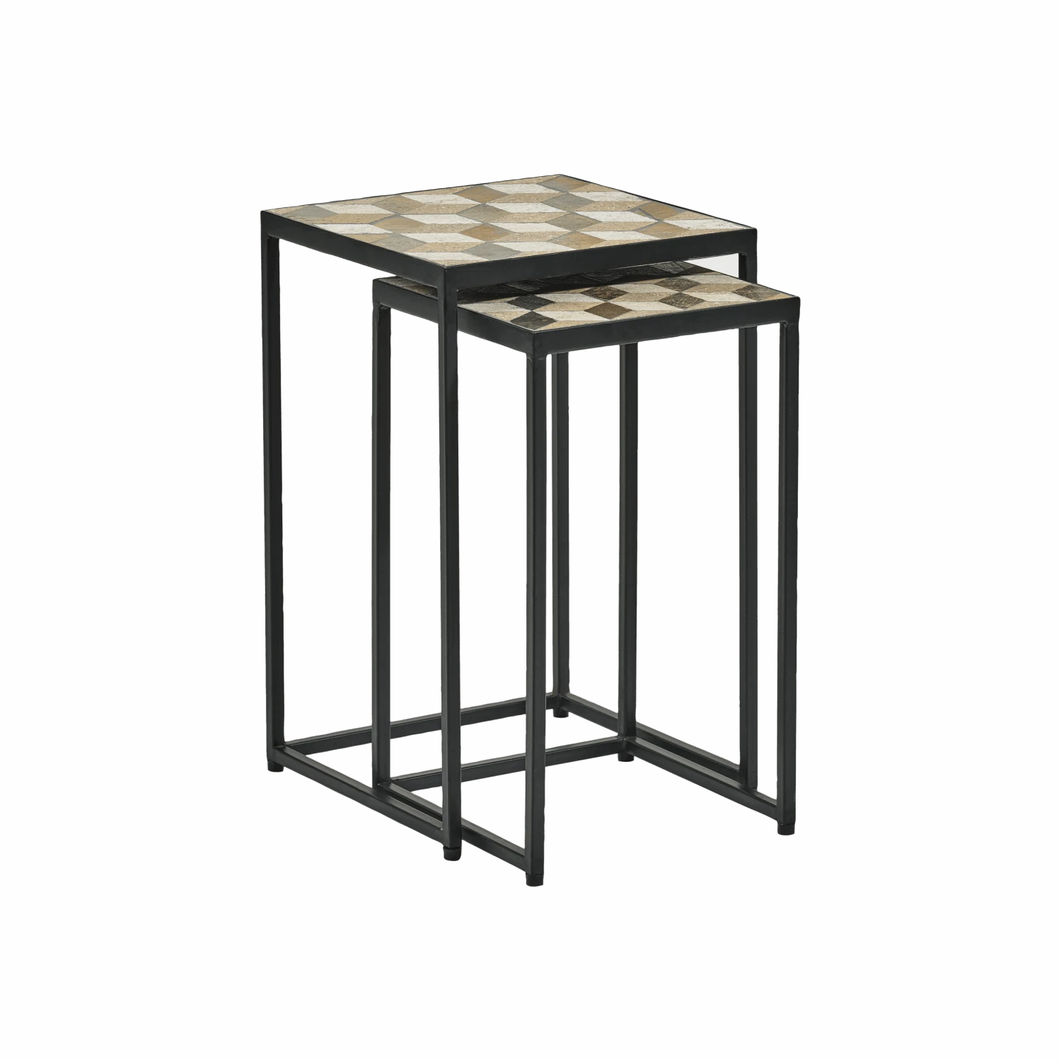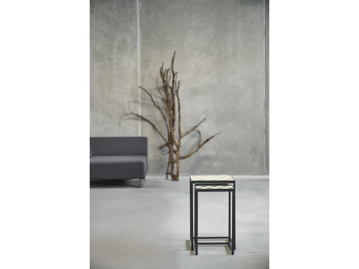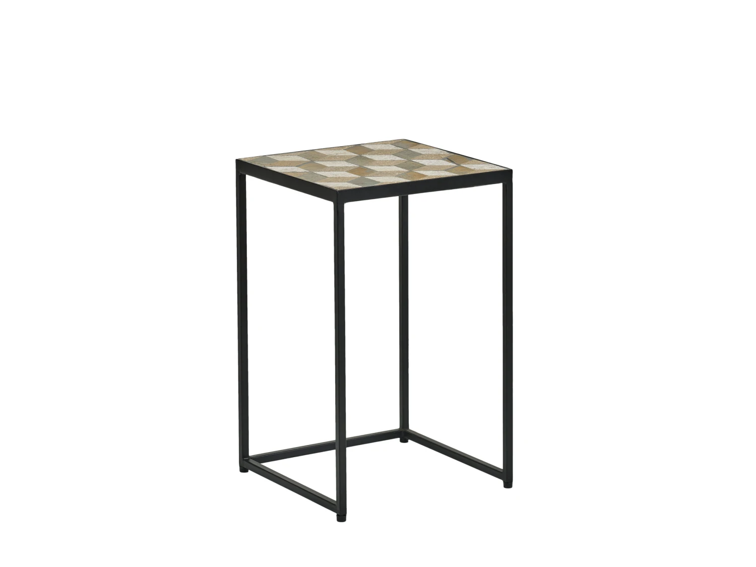 Beistelltisch mit gemustertem Einsatz aus Stein. Der Tisch sieht überall in der Wohnung toll aus: Stellen Sie ihn als Ergänzung zum Couchtisch ins Wohnzimmer, in den Flur oder ins Schlafzimmer. Es nimmt nicht viel Platz in Anspruch und lässt sich leicht umstellen.