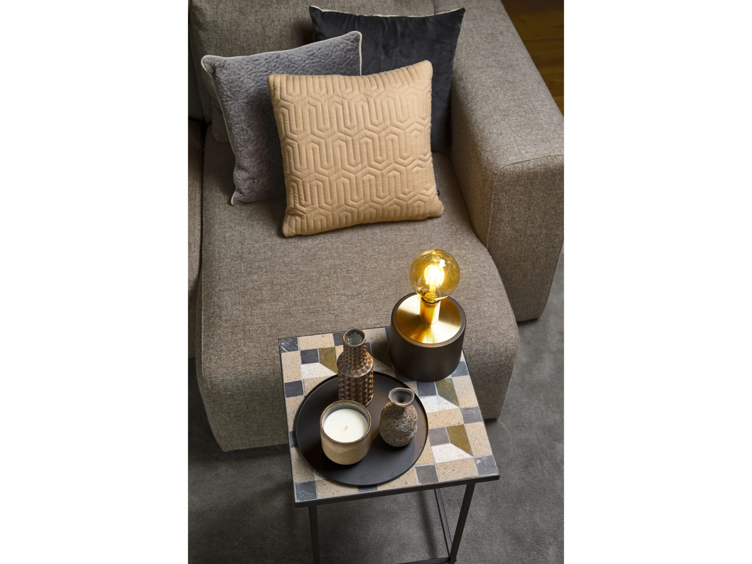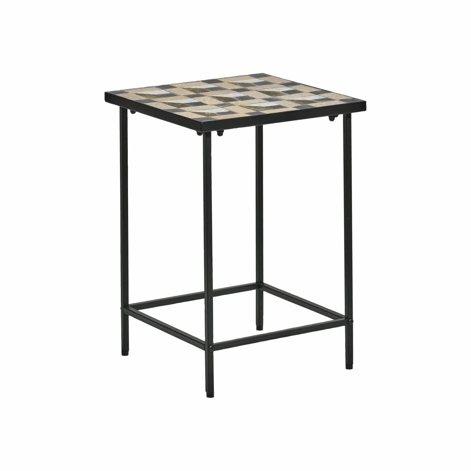 Beistelltisch mit gemustertem Einsatz aus Stein. Der Tisch sieht überall in der Wohnung toll aus: Stellen Sie ihn als Ergänzung zum Couchtisch ins Wohnzimmer, in den Flur oder ins Schlafzimmer. Es nimmt nicht viel Platz in Anspruch und lässt sich leicht umstellen.
