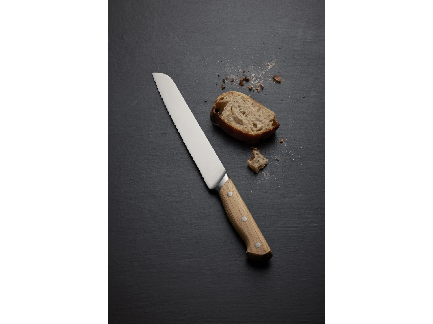 Das schöne Brotmesser eignet sich zum Schneiden von Brot jeder Art. Es wurde mit dem für Brotmesser typischen charakteristischen Wellenschliff entworfen. Die scharfen Zähne fassen die Brotkruste fest und schneiden schöne Scheiben.