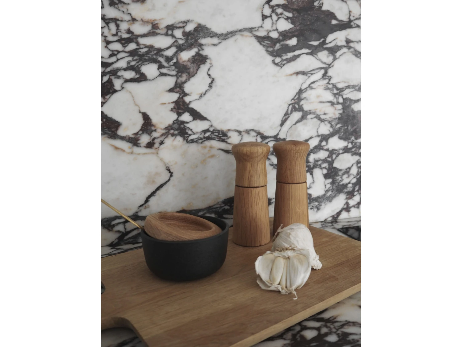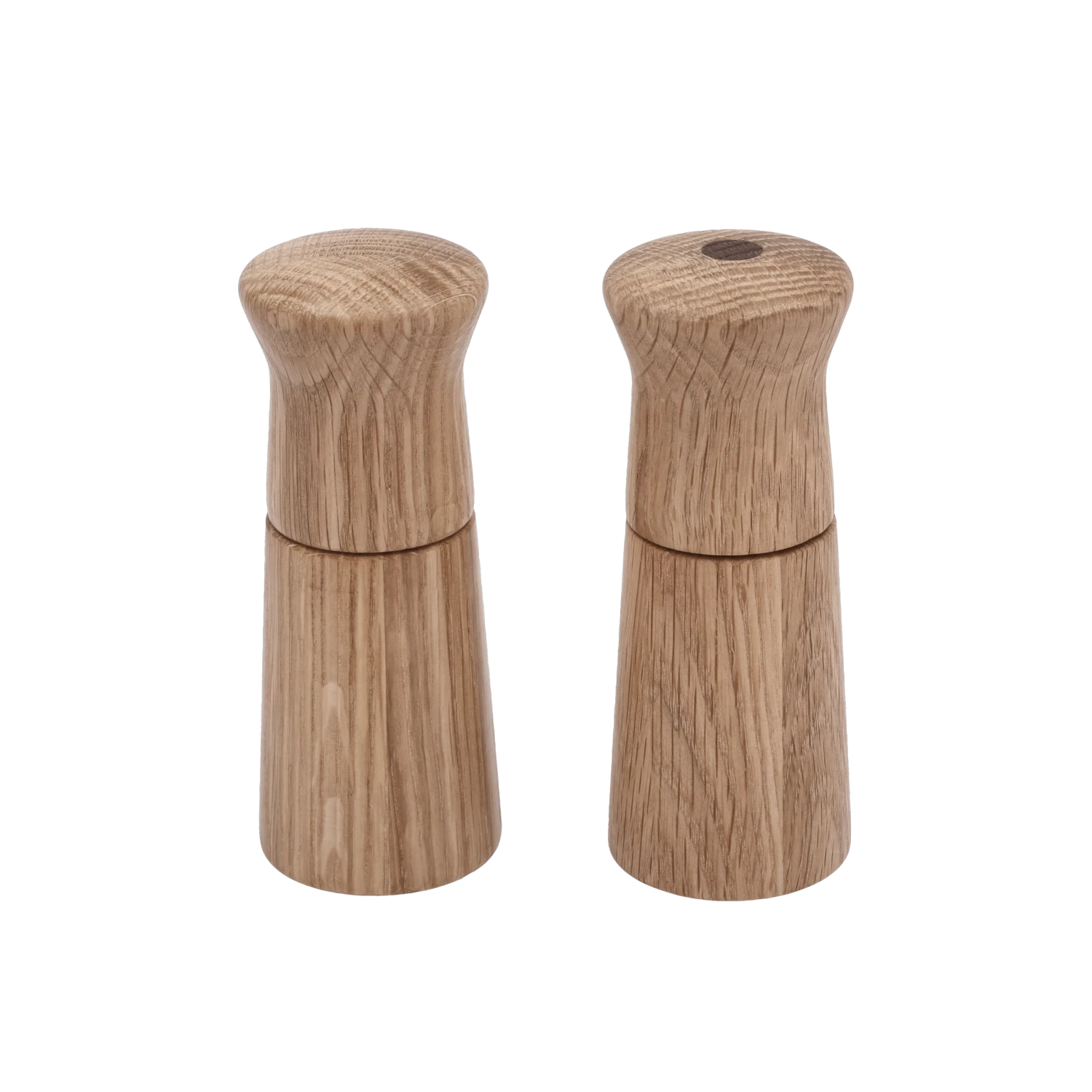 Salz- und Pfeffermühlen-Set aus Eichenholz. Die keramische CrushGrind® Mühle wurde so entwickelt, dass sie sowohl Salz und Pfeffer als auch alle anderen Arten von getrockneten Kräutern und Gewürzen mahlen kann – Sie können also gerne auch Ihre Lieblings-Gewürzmischung in die Mühlen füllen.
