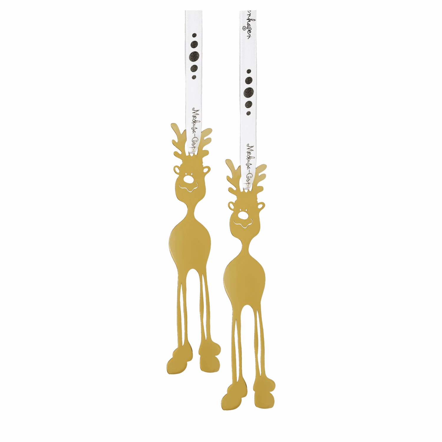 Mr. Golden Rudolf ist eine hübsche Weihnachtsdekoration aus Metall, die man an den Weihnachtsbaum, einen Korkenzieherhaselzweig oder etwas anderes hängen kann. Was auch immer Sie wählen – er sorgt garantiert für tolle Weihnachtsstimmung. 11 cm.