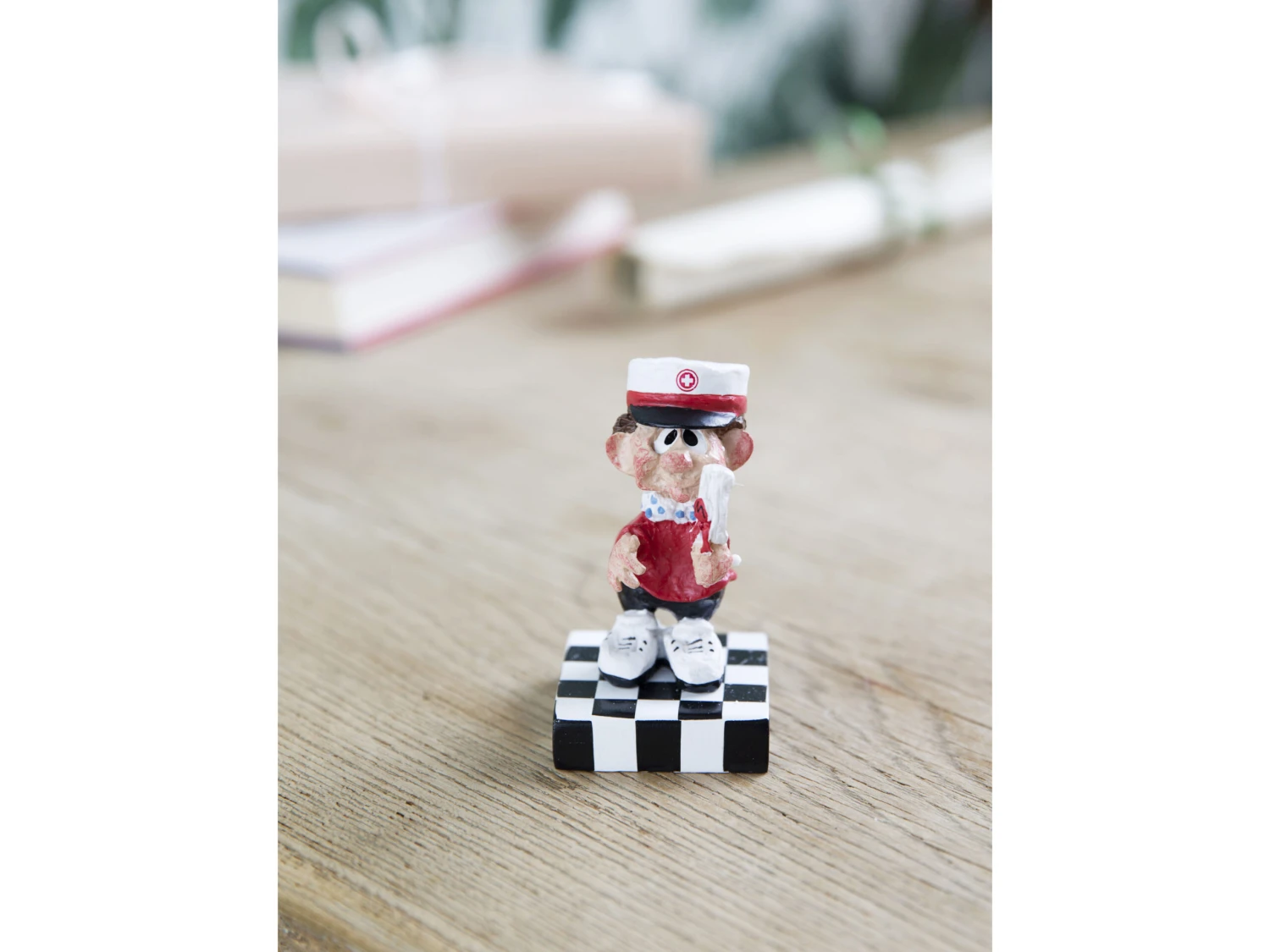Die rote Mütze steht dem frischgebackenen Abiturienten perfekt. Wenn die Zeit auf dem Gymnasium vorbei ist, sollte das mit einem Geschenk gefeiert werden, an das man sich erinnert. Diese Figur ist ein Geschenk für einen stolzen Abiturienten oder eine stolze Abiturientin, als eine Erinnerung für den Rest des Lebens. Die Figur ist von Hand bemalt und 9 cm hoch.