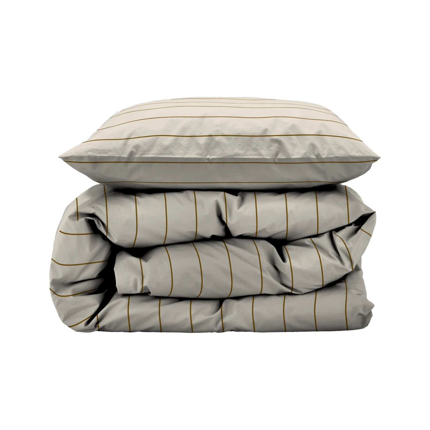 Die Line-Bettwäsche besticht durch ein modernes Design mit horizontalen Streifen, die eine moderne Interpretation des klassischen Streifenmusters darstellen. Die Farben sind gedämpft und weich, und sie sorgen für einen subtilen und angenehmen Look.