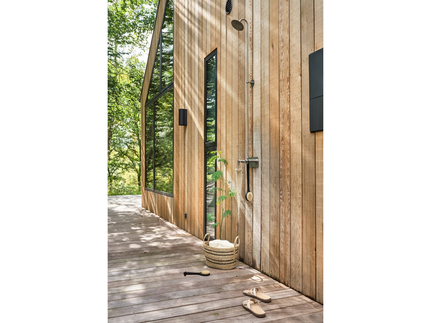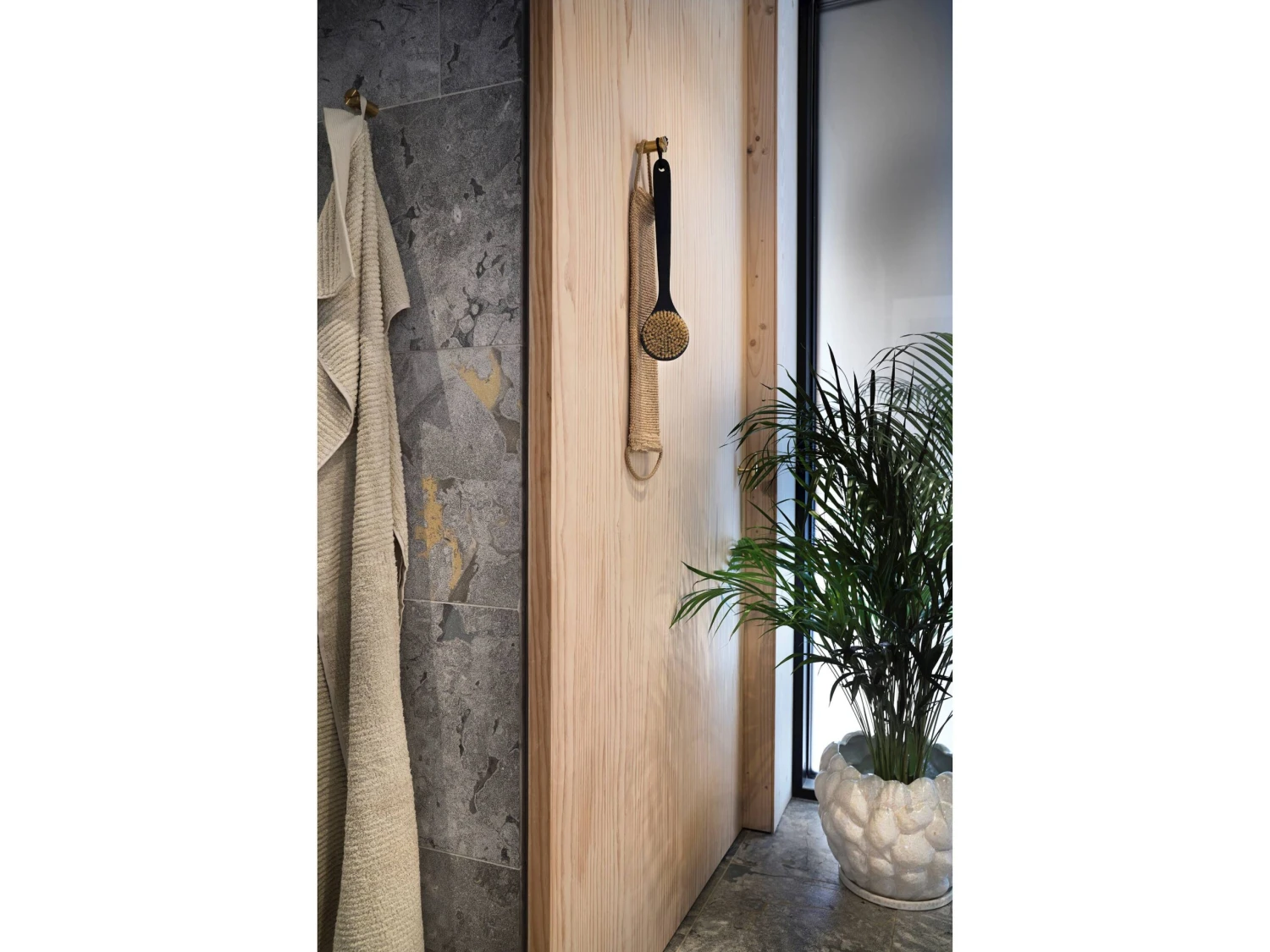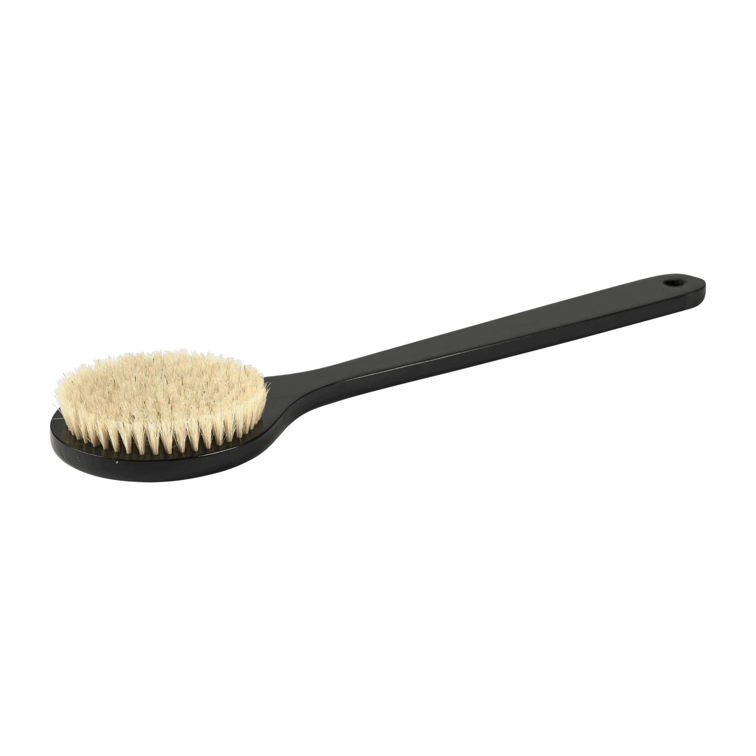 Hübsche Badebürste aus Schima-Holz, einem immergrünen Baum, der mit der Teebaum-Familie verwandt ist, und Borsten aus Naturhaar für ein sanftes Peeling.