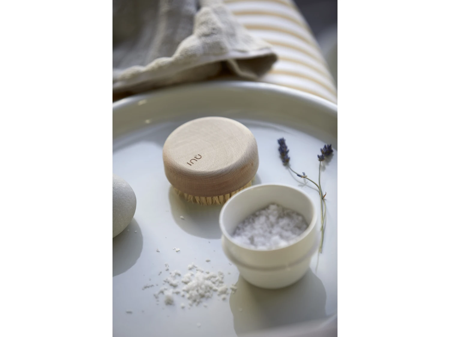 Der köstliche Badebürste von der Spaserie Inu, wurde für die kleinen momente des Genusses und Präsenz in einem geschäftigen Alltag entwickelt. Er ist aus hellem Buchenholz und Naturhaar aus Kaktusfasern hergestellt und hat ein weiches, organisches Design, das eine schöne Harmonie mit dem einfacher Dekor des Badezimmers schafft. Länge 8,6 cm.