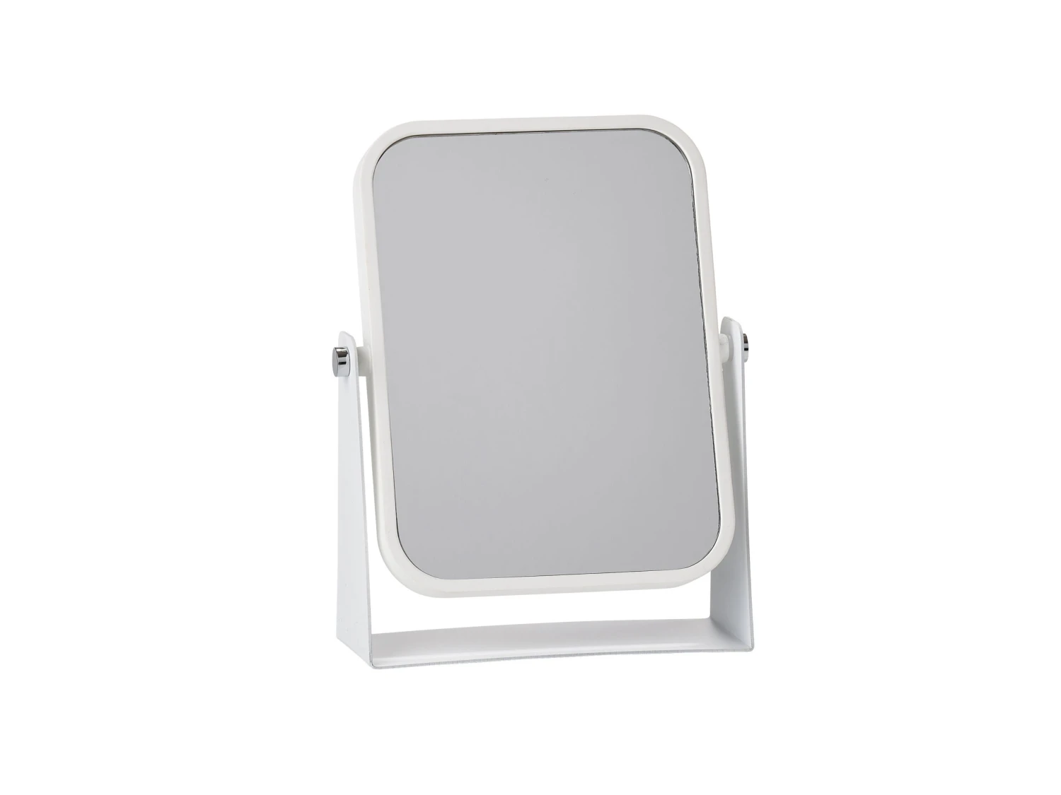 Praktischer und eleganter Tischspiegel mit Neigefunktion. Einerseits haben Sie einen Normalen Spiegel, andererseits erhalten Sie eine 3-fache Vergrößerung – perfekt als Schminkspiegel. Das schlichte und schlanke Design des Tischspiegels passt in jedes Innendesign. 15 x 20,5 x 6 cm.